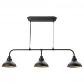 ОписаниеПотолочный светильник АГУННАРИД с планкой длиной 122 см (!) и 3 черными металлическими абажурами с внутренней поверхностью цвета латуни, создающей мягкий и теплый свет. Идеальное решение для освещения над длинным обеденным столом или кухонным островком.Артикул: 503.647.76
