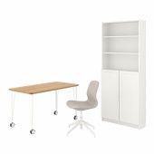 IKEA s19436827 ANFALLARE/LÅNGFJÄLL АНФАЛЛАРЕ/ЛОНГФ / BILLY/OXBERG БИЛЛИ/ОКСБЕРГ Стол и комбинация для хранения - и рабочий стул бамбук/бежевый белый