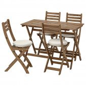Эта мебель занимает мало места при хранении, так стол и стулья складываются.Мебель обработана полупрозрачной морилкой. Это повышает ее прочность и подчеркивает выразительность натуральной фактуры дерева.Чтобы продлить срок службы подушки, ее можно регулярно переворачивать.4 подушки прилагаются.Рекомендовано для использования на улице.Для повторной обработки используйте морилку, продается отдельно.Подушки продаются отдельно.Дизайнер:Eva Lilja Löwenhielm/IKEA of SwedenМатериалы и уход