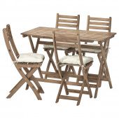 IKEA s39286186 ASKHOLMEN АСКХОЛЬМЕН Стол+4 складных стула, д/сада - серо-коричневая морилка/Куддарна бежевый