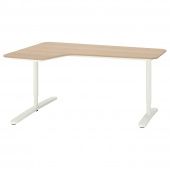 IKEA s39282838 BEKANT БЕКАНТ Углов письм стол левый - дубовый шпон, беленый/белый 160x110 см