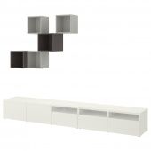 IKEA s19439755 BESTÅ БЕСТО / EKET ЭКЕТ Комбинация для ТВ - белый/светло-серый/темно-серый 300x42x210 см