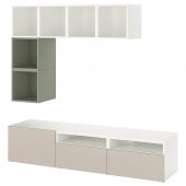 IKEA s79440732 BESTÅ БЕСТО / EKET ЭКЕТ Комбинация для ТВ - белый/светло-зеленый/светлый серо-бежевый 180x40x170 см