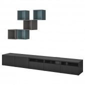 IKEA s39413599 BESTÅ БЕСТО / EKET ЭКЕТ Комбинация для ТВ - черно-коричневый/темно-серый серо-бирюзовый 300x42x210 см