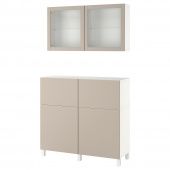 IKEA s09435705 BESTÅ БЕСТО Комб для хран с дверц/ящ - белый Лаппвик/стуббарп/светлый серо-бежевый прозрачное стекло 120x42x213 см