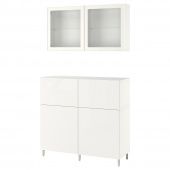 IKEA s59435699 BESTÅ БЕСТО Комб для хран с дверц/ящ - белый/СЕЛЬСВИКЕН/осарп глянцевый/белый прозрачное стекло 120x42x213 см