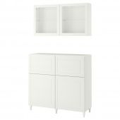 IKEA s89399223 BESTÅ БЕСТО Комб для хран с дверц/ящ - белый Смевикен/ОСТВИК/КАББАРП белый прозрачное стекло 120x42x213 см