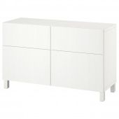 Конструкция петель позволяет отрегулировать и выровнять дверцу по вертикали и горизонтали.Ящики со встроенным нажимным механизмом открываются легким нажатием.Съемные полки позволяют регулировать пространство.Два ящика и полки за дверцами обеспечат достаточно места для хранения.Организуйте и оптимизируйте систему для хранения БЕСТО, используя подходящие коробки и вставки.Эту мебель необходимо крепить к стене с помощью прилагаемого стенного крепежа.Для различного типа стен требуются разные виды креплений. Выберите подходящие для ваших стен шурупы, дюбели, саморезы и т. п. (не прилагаются).Для функционирования нажимного механизма необходимо пространство между каркасом и фронтальной панелью ящика, чтобы ящик открывался нажатием. Небольшой зазор необходим для обеспечения этой функции и не является недостатком товара.Материалы и уход