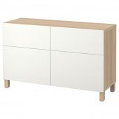IKEA s39248929 BESTÅ БЕСТО Комб для хран с дверц/ящ - под беленый дуб/Лаппвикен белый 120x42x74 см