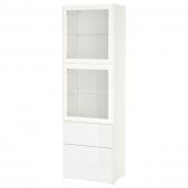 IKEA s49412542 BESTÅ БЕСТО Комбинация д/хранения+стекл дверц - белый/Сельсвикен глянцевый/белый прозрачное стекло 60x42x193 см