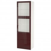 IKEA s59301143 BESTÅ БЕСТО Комбинация д/хранения+стекл дверц - белый Сельсвикен/темный красно-коричневый прозрачное стекло 60x42x193 см