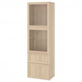IKEA s69435726 BESTÅ БЕСТО Комбинация д/хранения+стекл дверц - под беленый дуб/Ханвикен под беленый дуб, прозрачное стелко 60x42x193 см
