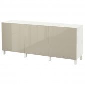 IKEA s79246706 BESTÅ БЕСТО Комбинация для хранения с дверцами - белый/сельсв/стуббарп глянцевый/бежевый 180x42x74 см