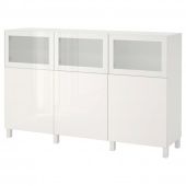 IKEA s09246601 BESTÅ БЕСТО Комбинация для хранения с дверцами - белый Сельсвикен/Глассвик глянцевый/белый матовое стекло 180x42x112 см
