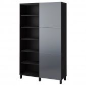 IKEA s19435842 BESTÅ БЕСТО Комбинация для хранения с дверцами - черно-коричневый/риксвикен под брашированное темное олово 120x42x202 см