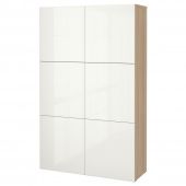 IKEA s19247167 BESTÅ БЕСТО Комбинация для хранения с дверцами - под беленый дуб/Сельсвикен глянцевый/белый 120x42x193 см