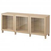 IKEA s39246666 BESTÅ БЕСТО Комбинация для хранения с дверцами - под беленый дуб/синдвик/стуббарп под беленый дуб, прозрачное стелко 180x42x74 см
