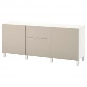 IKEA s29435525 BESTÅ БЕСТО Комбинация для хранения с ящиками - белый Лаппвик/стуббарп/светло-серый/бежевый 180x42x74 см