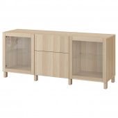 IKEA s09412737 BESTÅ БЕСТО Комбинация для хранения с ящиками - под беленый дуб Лаппвикен/синдвик/стуббарп под беленый дуб, прозрачное стелко 180x42x74 см