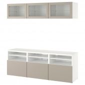 IKEA s99436499 BESTÅ БЕСТО Комбинация для ТВ/стеклянные дверцы - белый Синдвик/Лаппвикен светло-серый/бежевый 180x42x192 см