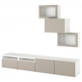 IKEA s79435066 BESTÅ БЕСТО Комбинация для ТВ/стеклянные дверцы - белый Синдвик/Лаппвикен светлый серо-бежевый 240x42x190 см