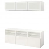 IKEA s69408657 BESTÅ БЕСТО Шкаф для ТВ, комбин/стеклян дверцы - белый/Сельсвикен глянцевый/белый матовое стекло 180x42x192 см