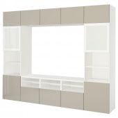 IKEA s59411085 BESTÅ БЕСТО Шкаф для ТВ, комбин/стеклян дверцы - белый/Сельсвикен глянцевый/бежевый матовое стекло 300x42x231 см