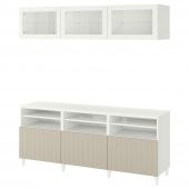 IKEA s79408690 BESTÅ БЕСТО Шкаф для ТВ, комбин/стеклян дверцы - белый СУТТЕРВ/КАББАРП/серо-бежевый прозрачное стекло 180x42x192 см