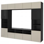 IKEA s89411036 BESTÅ БЕСТО Шкаф для ТВ, комбин/стеклян дверцы - черно-коричневый/Сельсвикен глянцевый/бежевый/дымчатое стекло 300x42x231 см