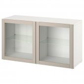 IKEA s89442047 BESTÅ БЕСТО Стеллаж с дверьми - белый/Синдвик светлый серо-бежевый 120x42x64 см