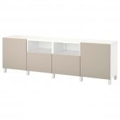 IKEA s69436453 BESTÅ БЕСТО Тумба под ТВ, с дверцами и ящиками - белый/Лаппвик/стуббарп светло-серый/бежевый 240x42x74 см