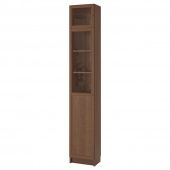 IKEA S09287427 БИЛЛИ / ОКСБЕРГ Стеллаж с верхними полками/дверьми, коричневый ясеневый шпон, стекло, 40x30x237 см