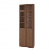 IKEA S19287342 БИЛЛИ Стеллаж с верхними полками/дверьми, коричневый ясеневый шпон, 80x30x237 см