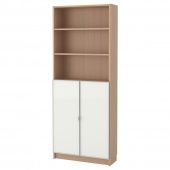 IKEA s99287357 BILLY БИЛЛИ / MORLIDEN МОРЛИДЕН Шкаф книжный со стеклянными дверьми - дубовый шпон, беленый/стекло 80x30x202 см