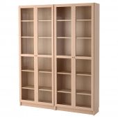IKEA s09249968 BILLY БИЛЛИ / OXBERG ОКСБЕРГ Стеллаж комбинация/стеклян дверцы - дубовый шпон, беленый/стекло 160x30x202 см
