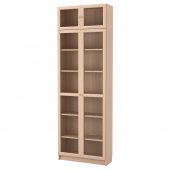 IKEA s89249974 BILLY БИЛЛИ / OXBERG ОКСБЕРГ Стеллаж комбинация/стеклян дверцы - дубовый шпон, беленый/стекло 80x30x237 см