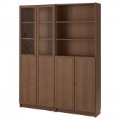 IKEA s19280722 BILLY БИЛЛИ / OXBERG ОКСБЕРГ Стеллаж/панельные/стеклянные двери - коричневый ясеневый шпон 160x30x202 см