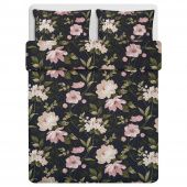 IKEA 80460700 БЛЕКФРЮЛЕ Пододеяльник и 2 наволочки, черный, цветок, 200x200/50x70 см