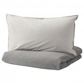 Благодаря сочетанию белых и цветных нитей ткань приобретает выразительную фактуру и приятную мягкую расцветку.Перкаль; прочная и прохладная и приятная на ощупь хлопчатобумажная ткань.Окрашено в пряже – после стирки цвета не блекнут. Мягкая и приятная на ощупь ткань.Пододеяльник на молнии – одеяло не будет выбиваться.Двусторонний пододеяльник с разным рисунком с каждой стороны позволяет легко обновить интерьер спальни, просто перевернув одеяло.Количество нитей на кв. дюйм: 200.Чем выше количество нитей на квадратный дюйм, тем прочнее и плотнее ткань.Наволочка с клапаном.Дизайнер:IKEA of SwedenМатериалы и уход