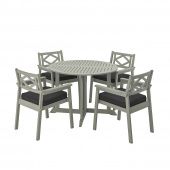 ОписаниеКомплект садовой обеденной мебели на 4 человека выполнен в традиционном стиле. Очень мягкие подушки темно-серого цвета не выцветают и имеют водоотталкивающее и противоскользящее покрытие.Артикул: 193.305.43