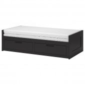 IKEA s49426426 BRIMNES БРИМНЭС Кушетка с 2 матрасами/2 ящиками - черный/осванг жесткий 80x200 см