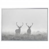 IKEA S89384721 БЬЁРКСТА Картина с рамой, Олени в тумане, цвет алюминия, 200x140 см