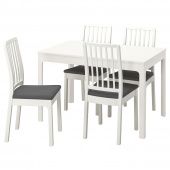 IKEA s99429413 EKEDALEN ЭКЕДАЛЕН / EKEDALEN ЭКЕДАЛЕН Стол и 4 стула - белый/Хакебу темно-серый 120/180 см