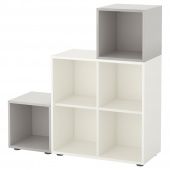 Ассиметричное расположение секций подчеркнет индивидуальность решения для хранения.Сборка очень проста благодаря штифтам, которые вставляются в подготовленные отверстия.Регулируемые ножки позволяют скорректировать неровности пола.Эту мебель необходимо крепить к стене с помощью прилагаемого стенного крепежа.Для различного типа стен требуются разные виды креплений. Выберите подходящие для ваших стен шурупы, дюбели, саморезы и т. п. (не прилагаются).Дизайнер:IKEA of Sweden/Jon KarlssonМатериалы и уход