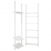 ОписаниеВы можете использовать комбинацию ЭЛВАРЛИ для хранения книг или одежды, а можете превратить ее в витрину для декоративных предметов. Полки, платяные штанги и регулируемые стойки позволят вам эффективно задействовать все место от пола до потолка.Артикул: 092.039.65