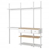 ОписаниеВы можете использовать комбинацию ЭЛВАРЛИ для хранения книг или одежды, а можете превратить ее в витрину для декоративных предметов. Полки, платяные штанги и регулируемые стойки позволят вам эффективно задействовать все место от пола до потолка.Артикул: 292.039.69