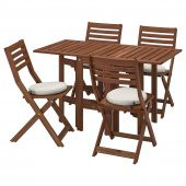 ÄPPLARÖ ЭПЛАРОСтол+4 складных стула, д/садаНомер товара: 093.284.56ÄPPLARÖ ЭПЛАРОСкладной стол, садовыйНомер товара: 004.197.95Ширина: 73 смВысота: 17 смДлина: 74 смВес: 21.00 кгÄPPLARÖ ЭПЛАРОСадовый стулНомер товара: 004.131.33Ширина: 43 смВысота: 16 смДлина: 103 смВес: 5.30 кгDUVHOLMEN ДУВХОЛЬМЕНВнутренняя подушка д/подушки стулаНомер товара: 203.918.42Высота: 4 смВес: 0.19 кгДиаметр: 35 смFRÖSÖN ФРЁСЁНЧехол на подушку стулаНомер товара: 803.917.35Ширина: 16 смВысота: 2 смДлина: 21 смВес: 0.16 кгПодробнее о размере товара