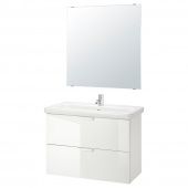 IKEA s49436034 FISKÅN ФИСКОН / TVÄLLEN ТВЭЛЛЕН Комплект мебели для ванной,6 предм. - глянцевый белый/ПИЛКОН смеситель 84x43x65 см