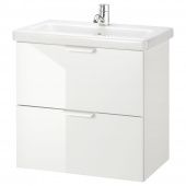 IKEA s79430436 FISKÅN ФИСКОН / TVÄLLEN ТВЭЛЛЕН Шкаф под раковину с 2 ящиками - глянцевый белый/ПИЛКОН смеситель 64x43x65 см