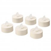 Мерцающий приятный свет светодиодной свечи практически не отличим от света настоящей свечи. Прекрасное решение для семей с детьми. Такие свечи можно использовать в любом уголке дома, не опасаясь пожара.Удобно и просто использовать благодаря интегрированному таймеру, который автоматически включает подсветку на 6 часов.По сравнению с лампами накаливания светодиоды потребляют на 85 % меньше электроэнергии и служат в 10 раз дольше.Также одобрено для использования на улице, поэтому можно использовать для оформления лоджии или балкона.Батарейки продаются отдельно. ИКЕА рекомендует литиевые батарейки ПЛАТБОЙ CR2032 3V (6 шт.). Требуется 6 батареек.Одобрено для использования вне помещений.Встроенный таймер установлен на 6 часов освещения. Затем свет автоматически выключается на 18 часов.Литиевые батарейки ПЛАТБОЙ CR2032 3V обеспечат работу в течение 70 часов. Это примерно 12 дней, при включении в течение 6 часов в день.Интегрированный светодиод.Срок службы светодиода около 20 000 часов.Температура света: теплый белый (2500 К).Может требоваться специальная обработка отходов. За более подробной информацией обращайтесь в местные органы власти.Материалы и уход